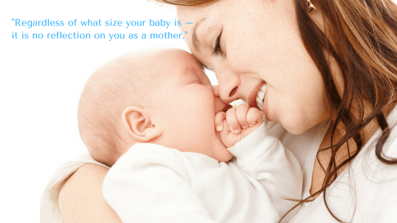 Really big babies (like 10 pounds) are at risk for their own medical complications, just like really small babies are. And regardless of what size your baby is – it is no reflection on you as a mother. Do you love, cherish, kiss, and care for your baby? Then you are a good mother! We’ve got to drop the obsession with birth weight.