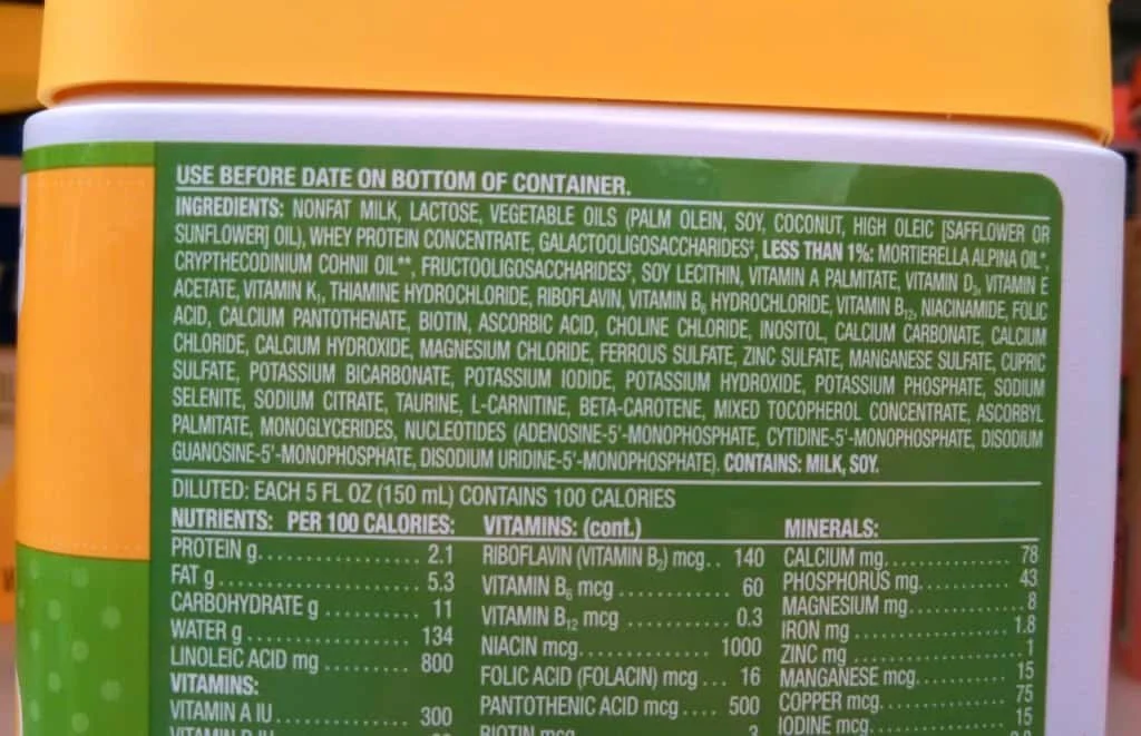 You may not be able to distinguish differences between brands by looking at the nutrition label chart alone, since this label mostly lists the amounts of the 29 required nutrients. To make an informed decision, You must read the formula label list of ingredients!